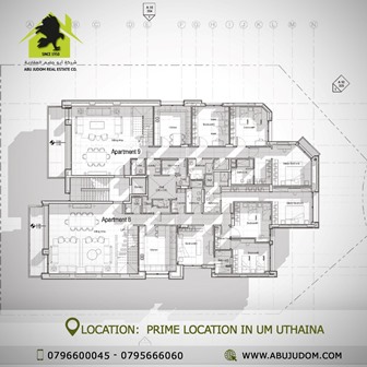Luxury Residential Apartments For Sale in Prime Location of Um Uthaina with very special finishings, 2 parking spots and 1 store for each Apartment Available Spaces from 215 Sq.m to 250 Sq.m and Prices From 1100 to 1200 JD per Sq.m